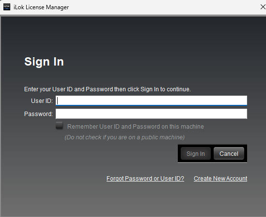 - Click "Sign In" in the top‑left corner. If you already have an iLok account, sign in. If not, select "Create New Account" and follow the on‑screen instructions on Create New Account in the "Sign In" window, and follow the prompts to create an account.