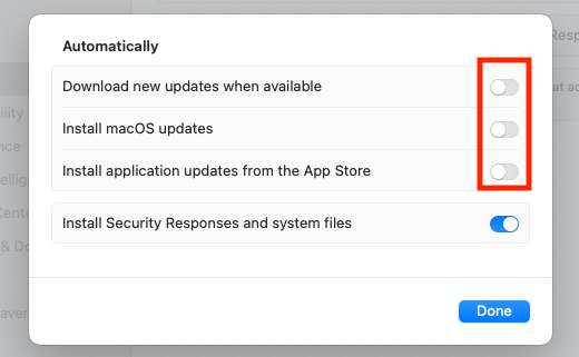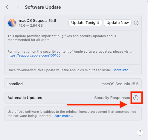 - Click the Information (i) icon beside Automatic Updates
